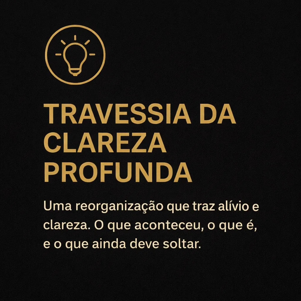 Aqui você finalmente solta o que nunca foi seu carregar: culpas do passado, pressões externas, expectativas alheias.